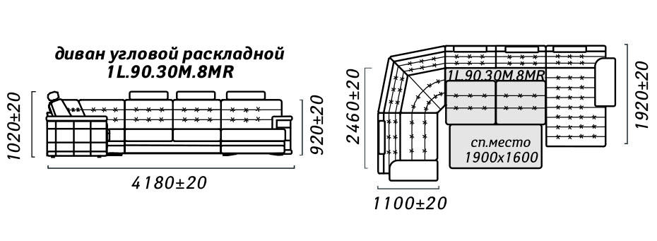 Угловой диван «Ричмонд» (1L/R90.30М8МL/R)